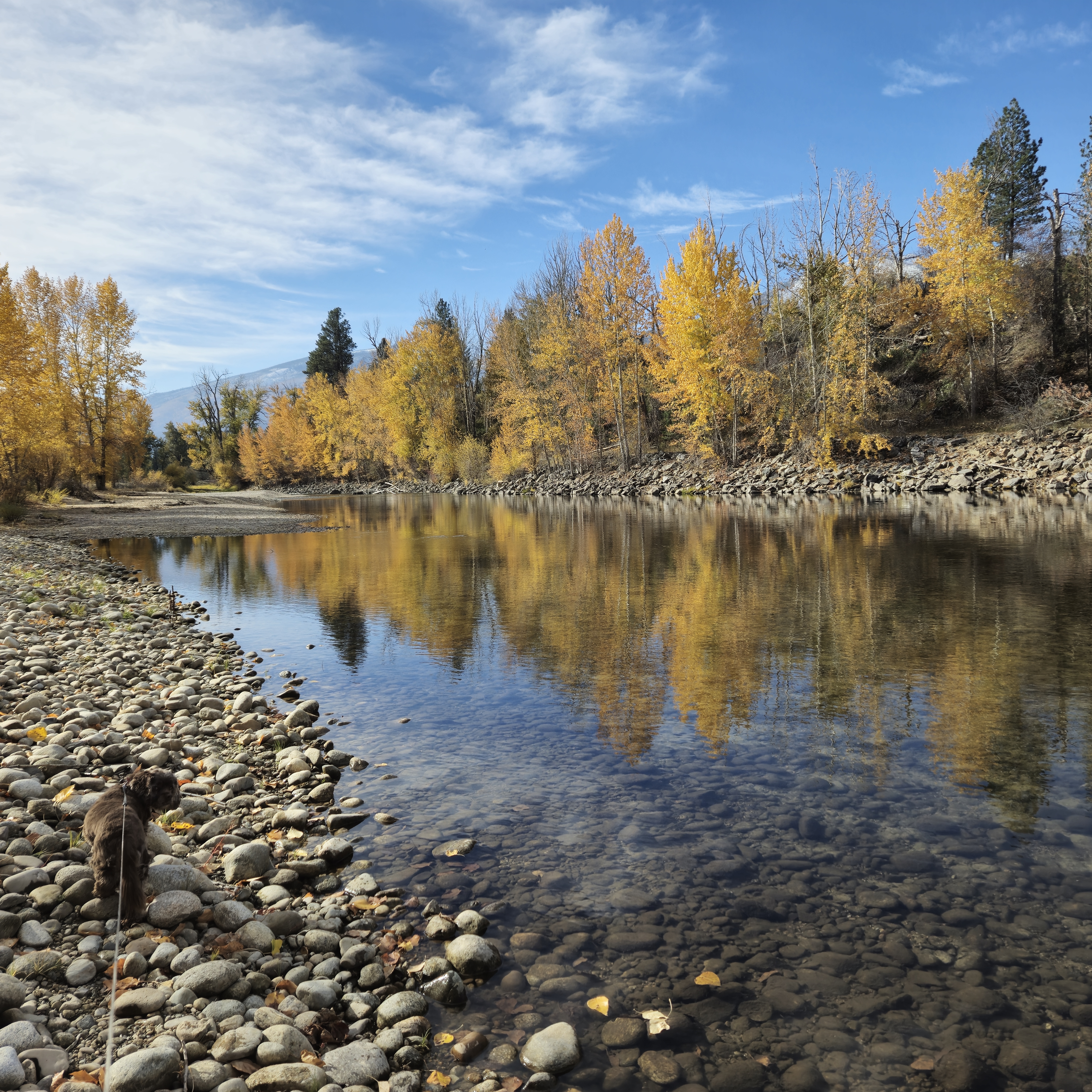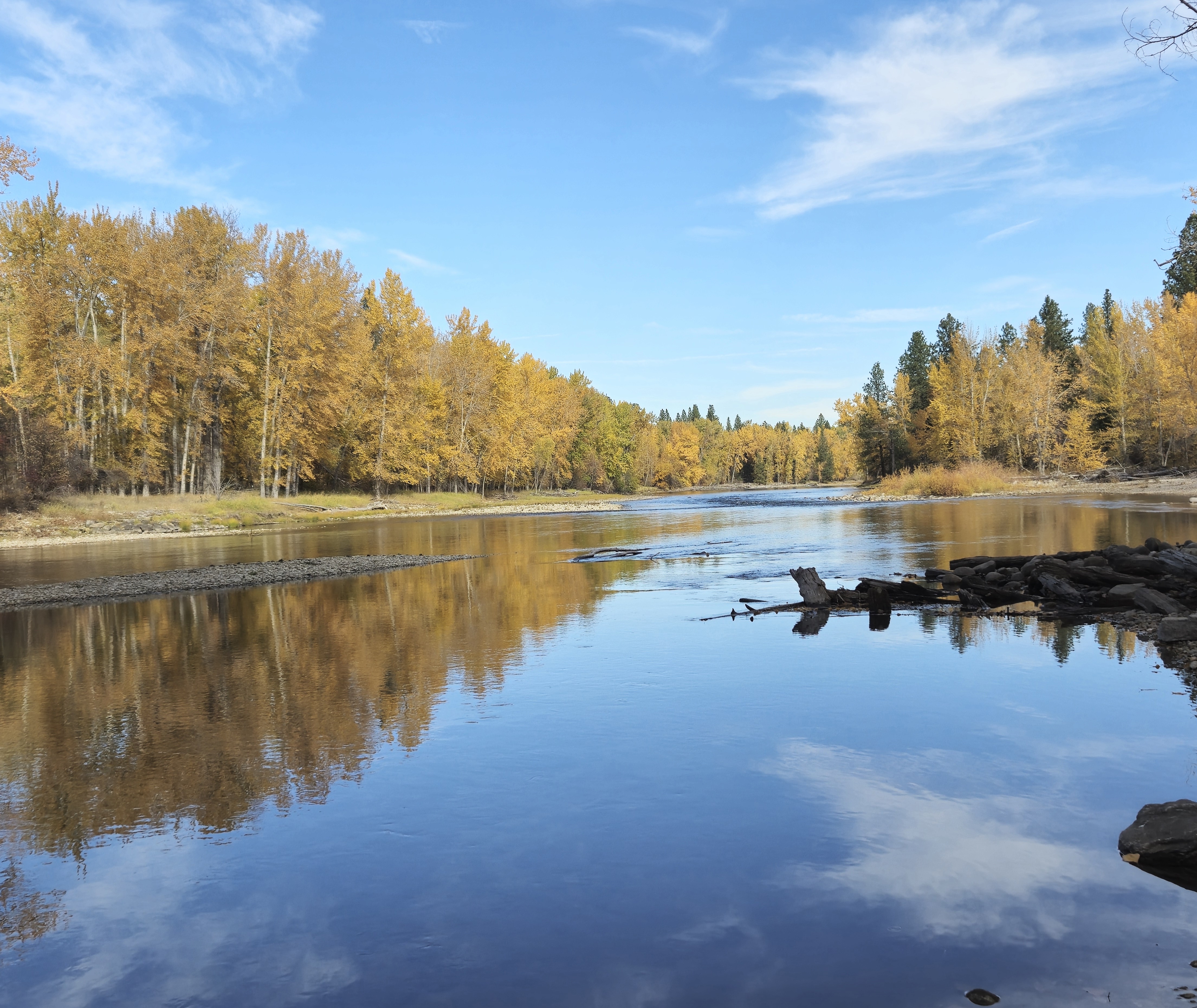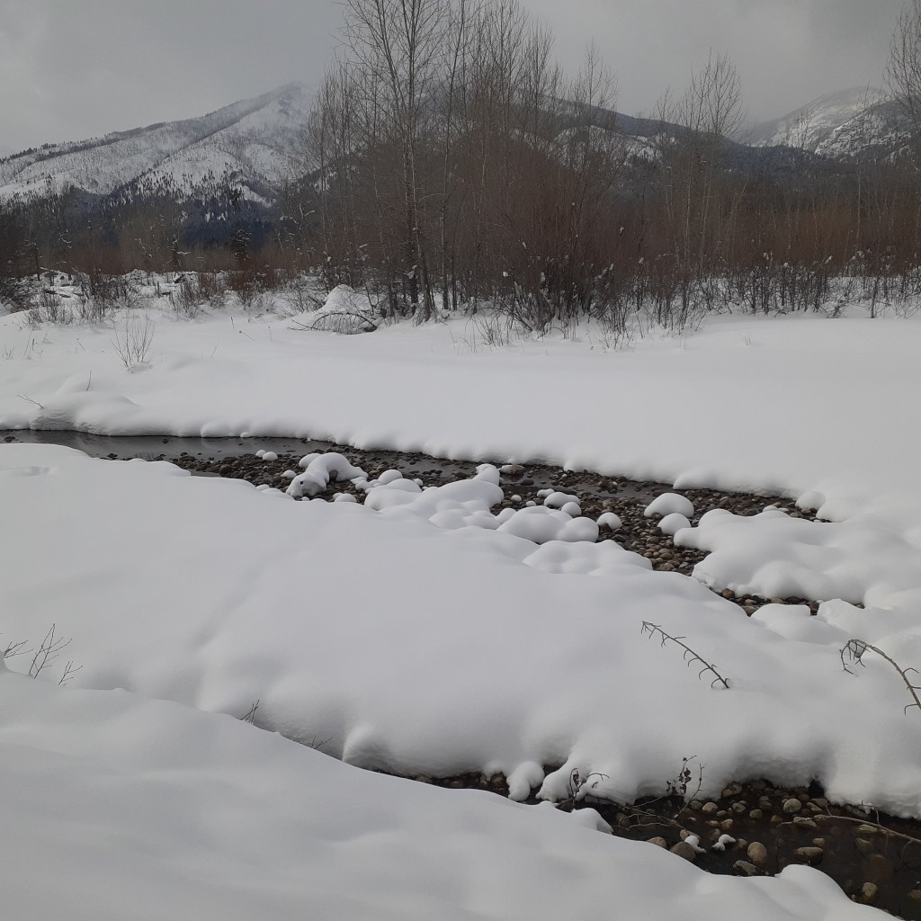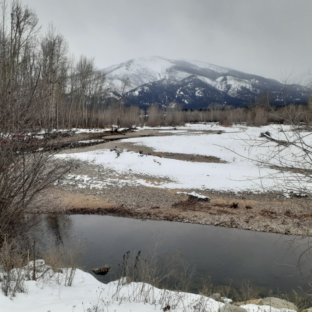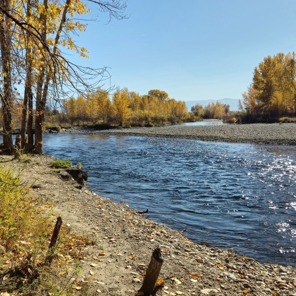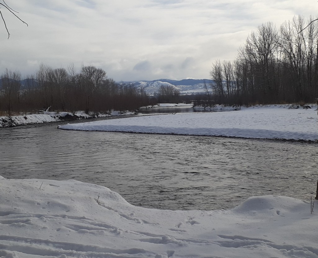 It’s a precious gift to be able to go out to the river here, barely out of town, and share the beauty and serenity with the animals that call this home – deer, birds, bears, turtles, etc., etc., etc. The river plays soft background music and the clouds stay busy painting shadows and highlighting dramatic geology in the canyons of the Bitterroots.