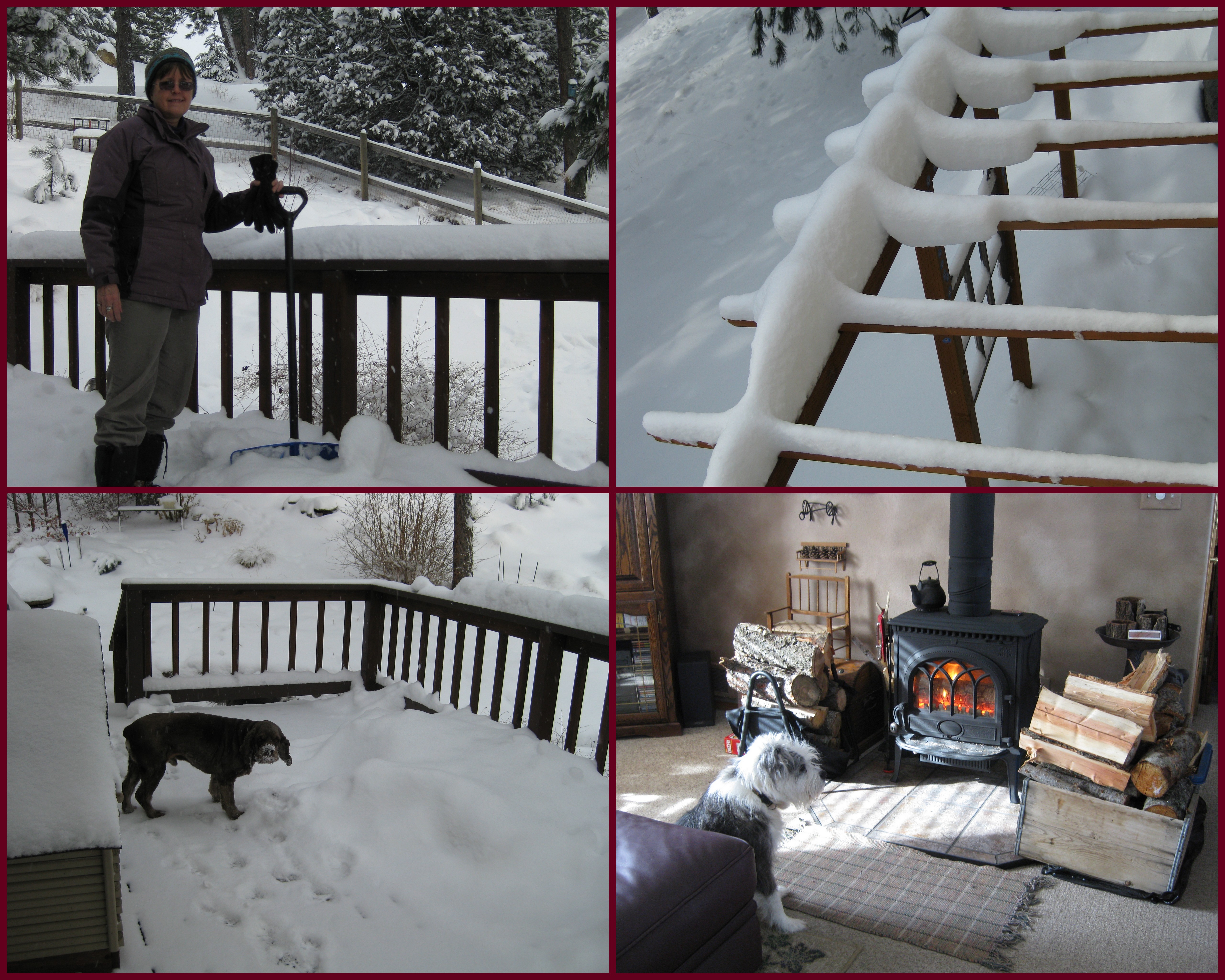 Yes, too much of a good thing! ;-} Love the pic of Sara! Smart dog! Although she probably WOULD rather be outside! …. Snow-kerling!