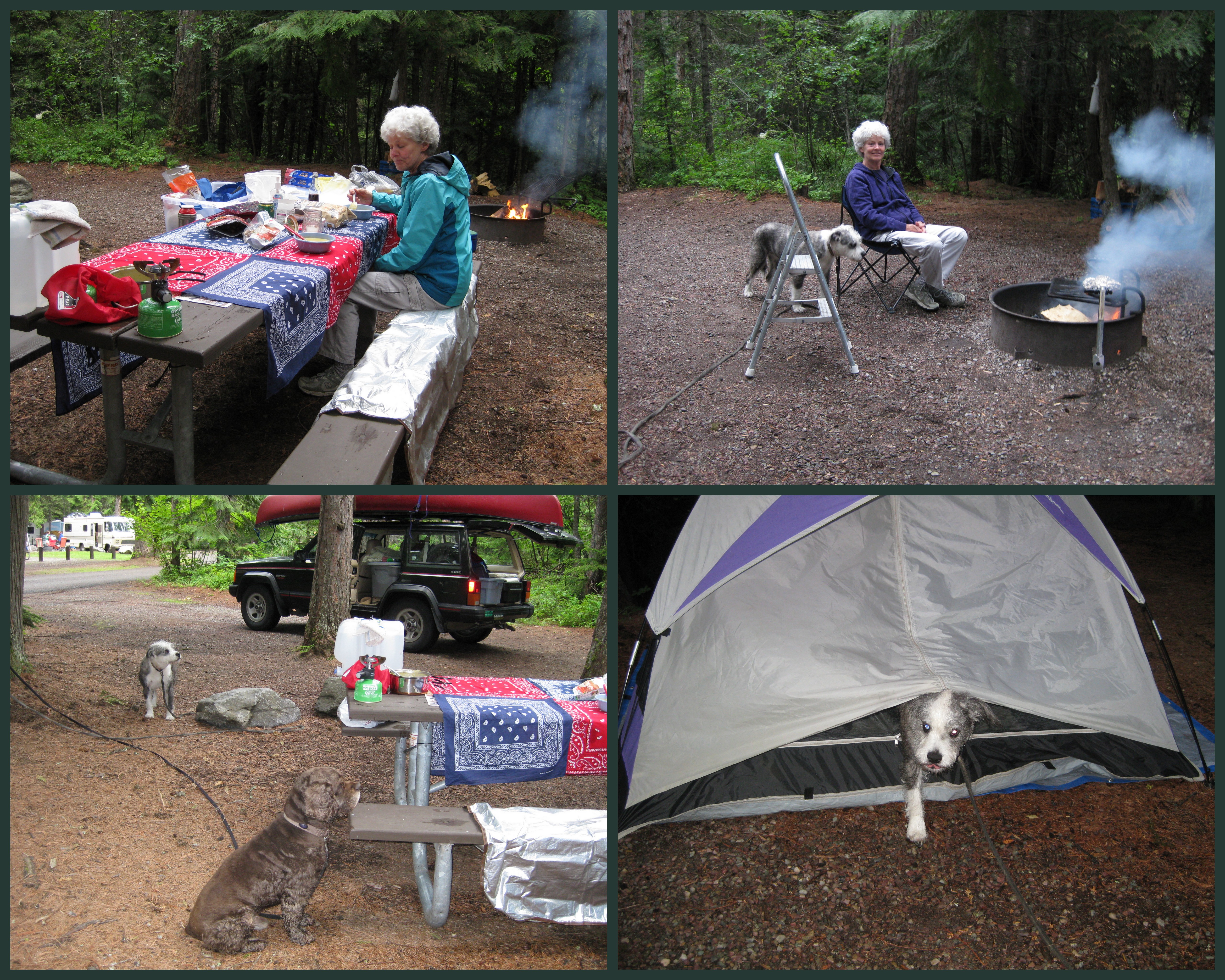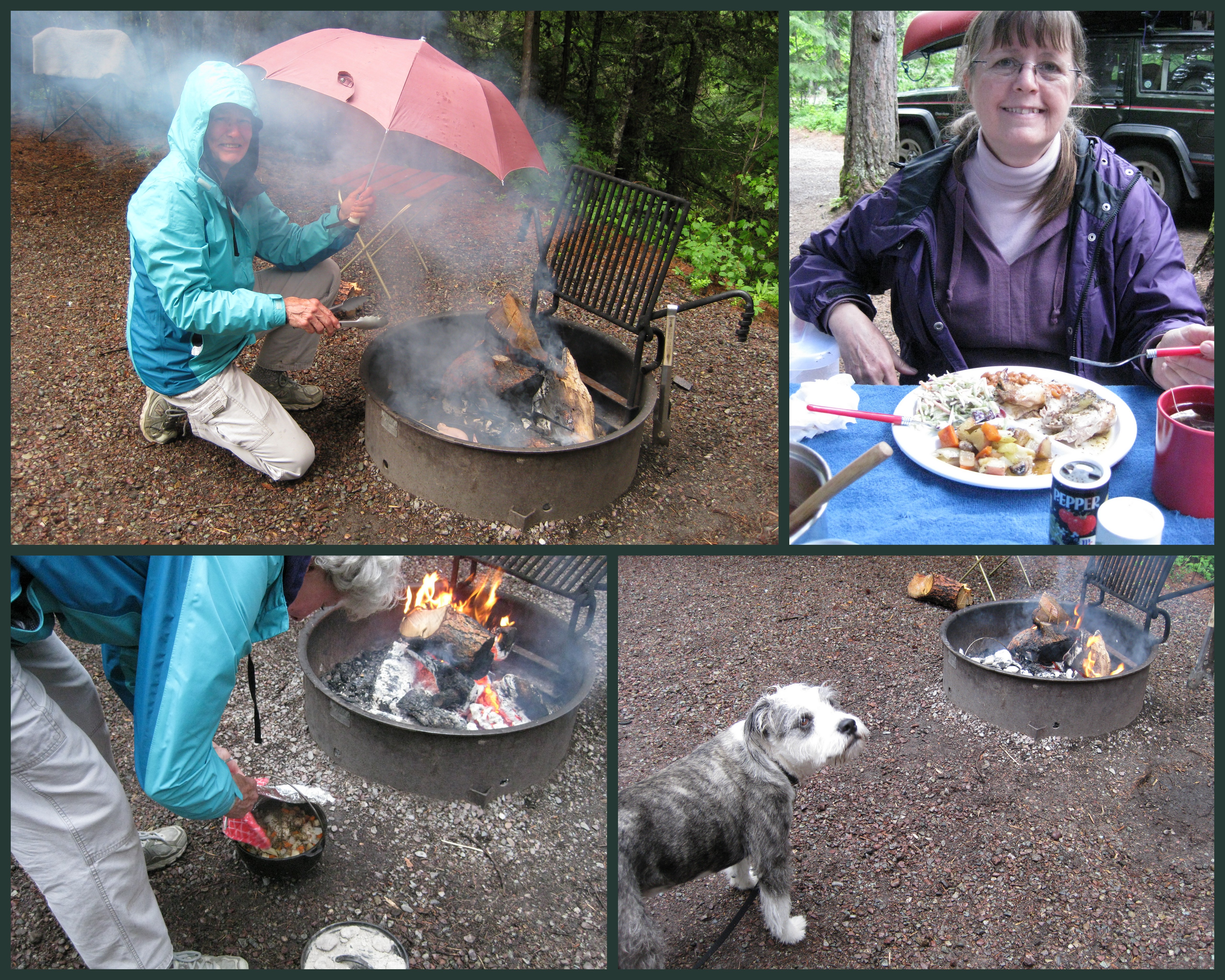 The last two blogs I talked about fire wood. Finding, cutting, hauling, splitting. Now we talk about using, the final step! 🙂 Yep, it’s summer time. Lots to do and shouldn’t be thinking about firewood but summer means camping and camping means campfires! In the case of a recent two-night stay in Glacier Park, not only did we cook with it but we huddled around it and enjoyed its warmth, well, until it started raining too hard. Yep, it’s June in Montana!