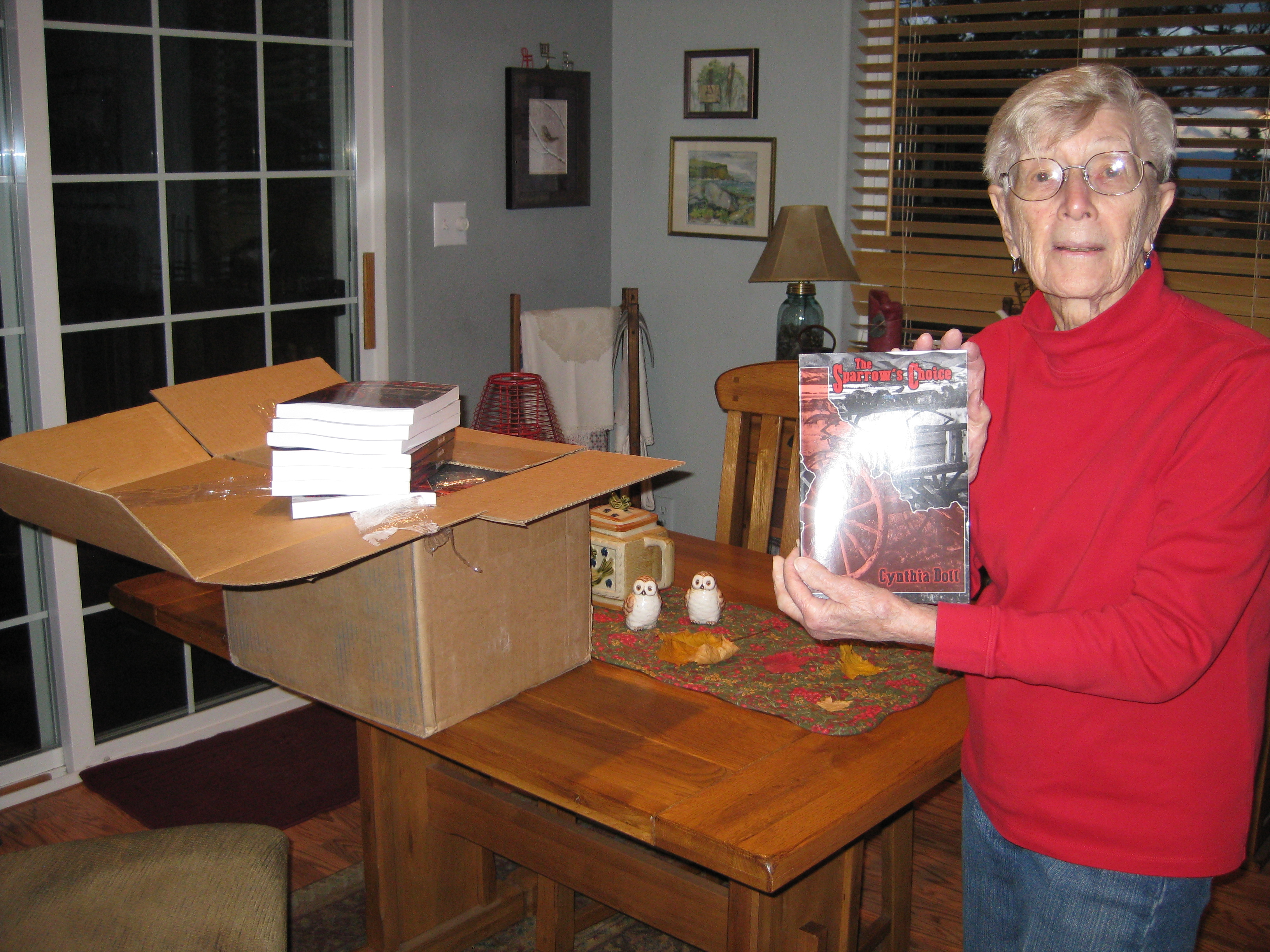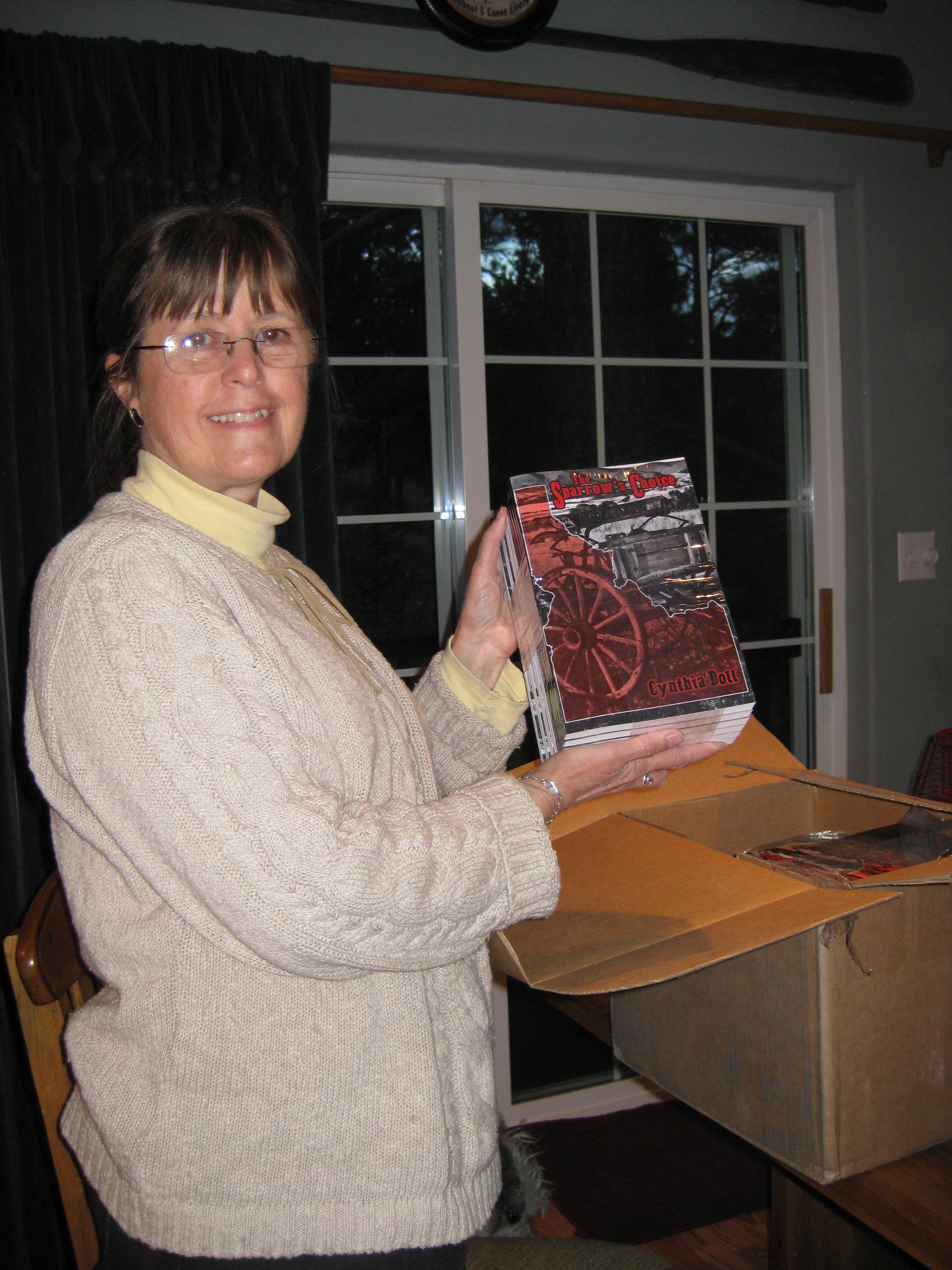 Surprise! Posted on October 30, 2014 by Cynthia Doll I went out to get wood last night and there they were!!!! Such a thrill to open that box and see my title, my name!!! And Lois wanted to get the first one out of the box, so I called her right over π Hollywood can call any time now π Share this: Click to share on Pinterest (Opens in new window) Pinterest Click to share on Facebook (Opens in new window) Facebook Like Loading... Related
