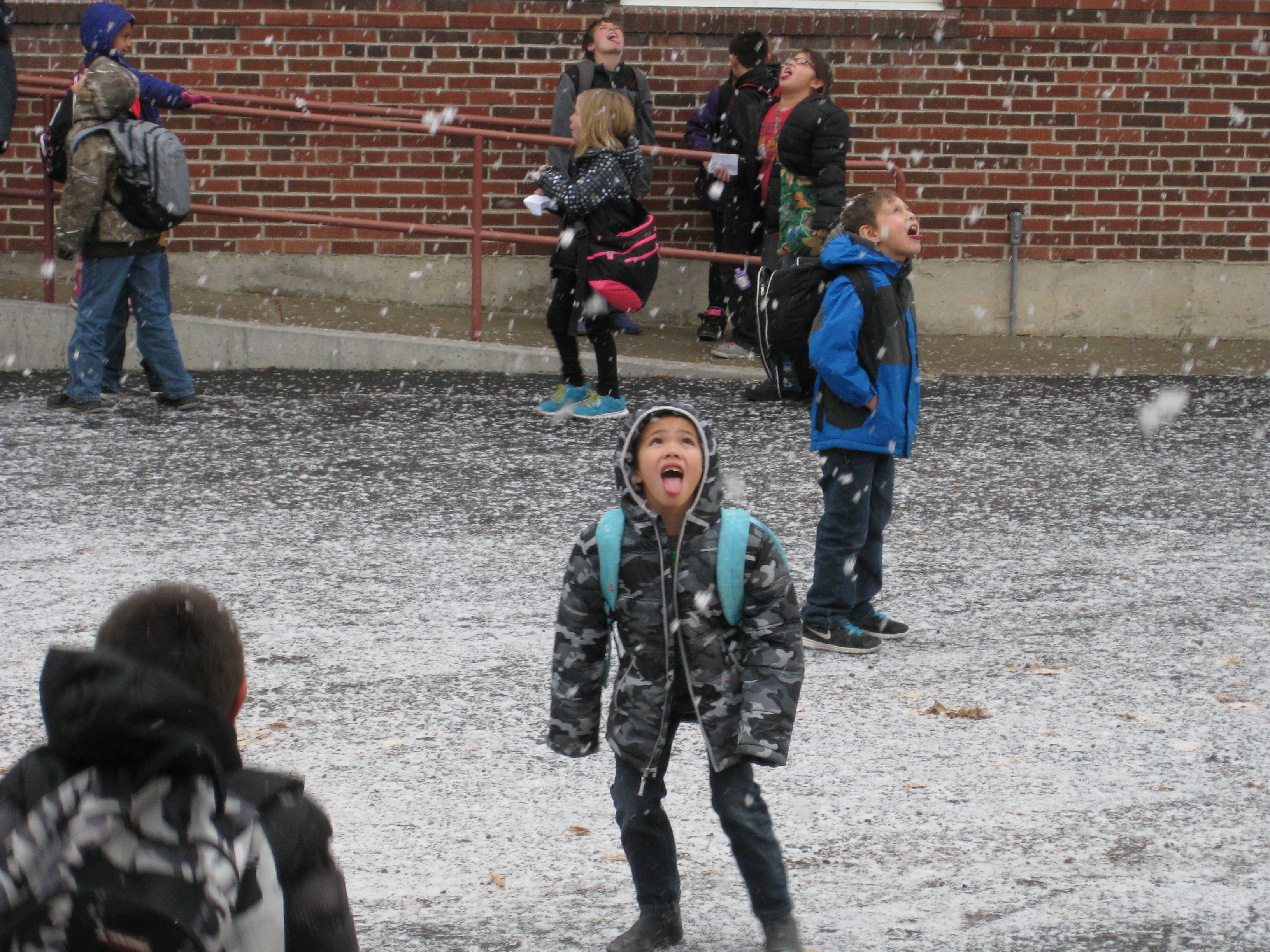 Kids catching snowflakes, like…