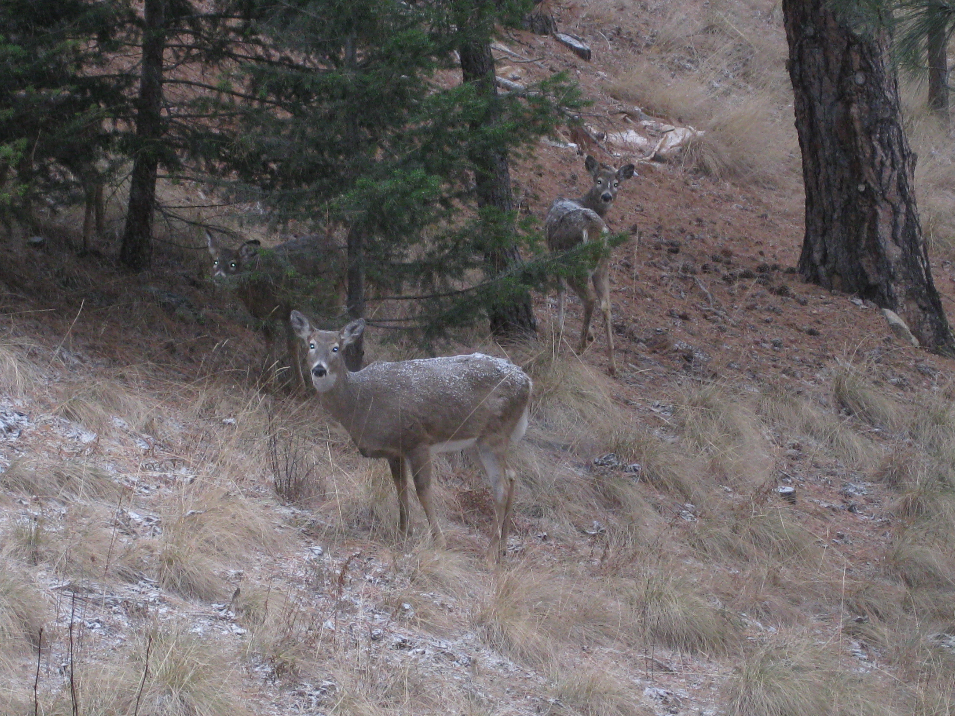 Snow landing on deer, like…
