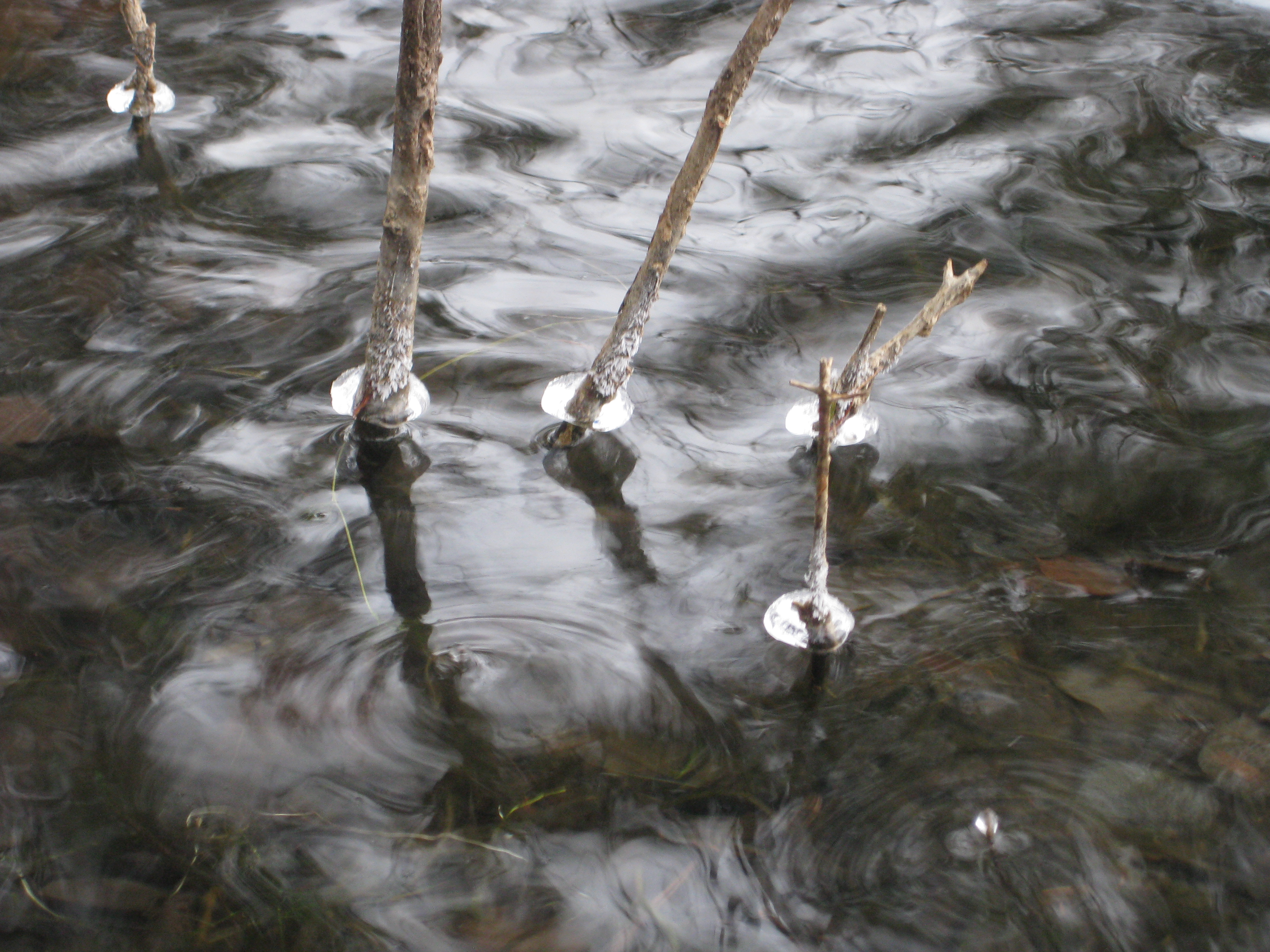 Ice skirts around lake bushes, like…