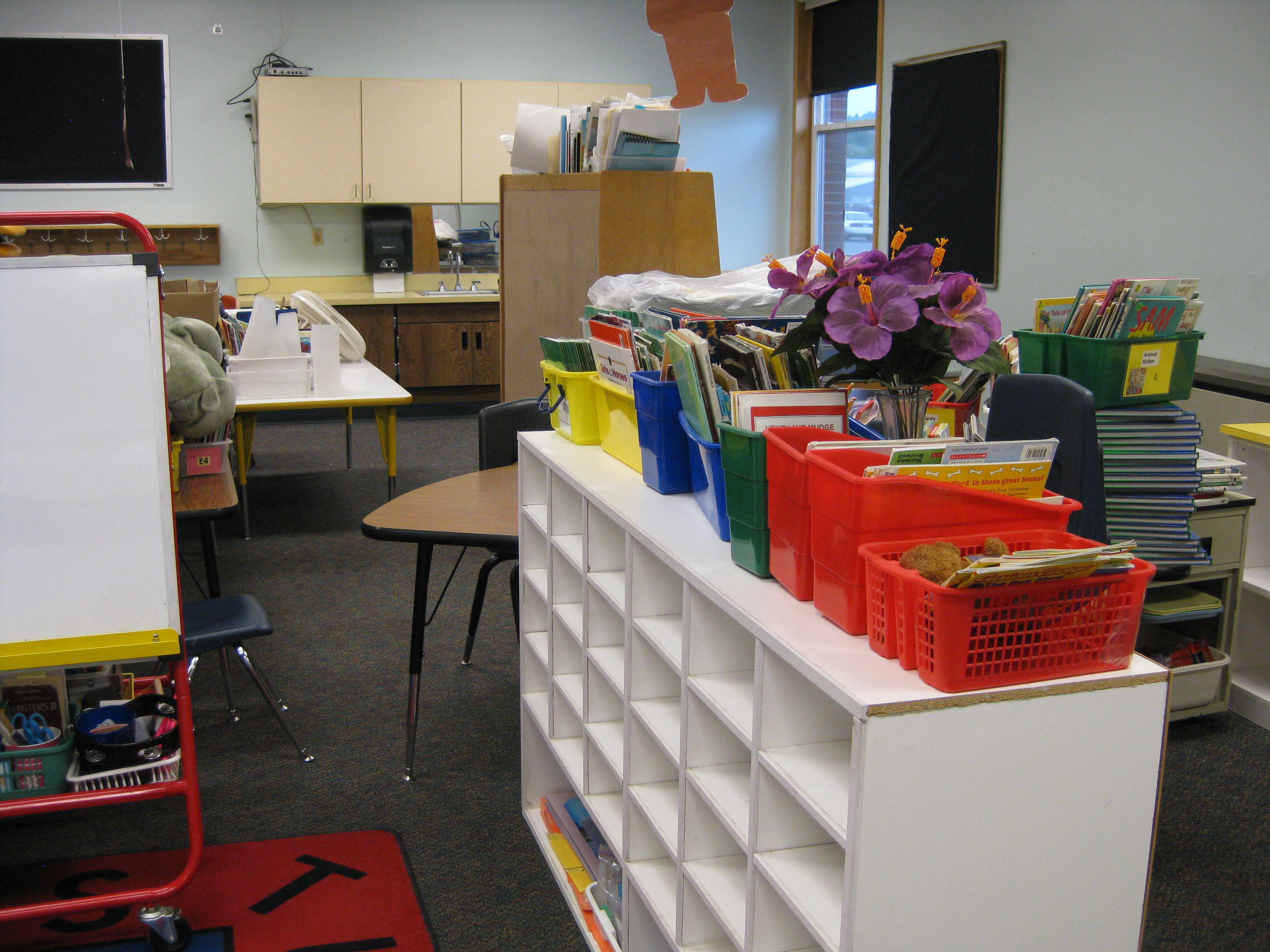 School has totally changed since I went. No more blackboards and chalk. There are white boards and smart boards and computers in every room. There are rocking chairs and bean bag chairs and toy kitchens. There are stacks of toys and games, puzzles and Legos. One room has a red-eared turtle named Michael Angelo, who begs for food if one gets too close. The one familiar and comforting thing is the alphabet – still strung around the top of the boards in the front of the classroom, each letter with a matching picture. A is still for apple and Z is still for zebra – phew!