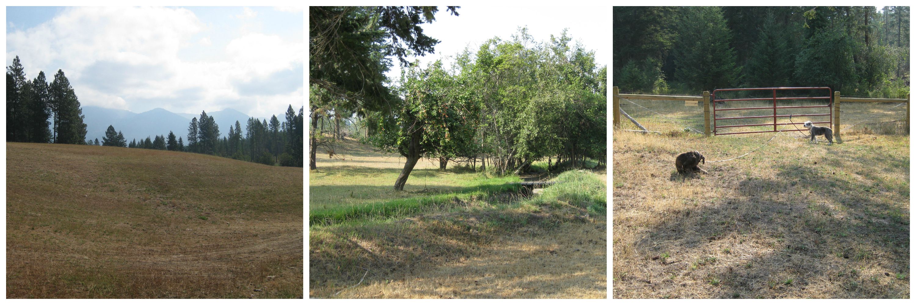 The second picture is an apple tree, all that remains to indicate there used to be a cabin, someone’s home, there along this dry creek. The current owner’s don’t know how long it’s been gone. The third pic is my reluctant helpers. Sara never likes being tied up but three bears visit that apple tree every day and, though I doubt they’d come around while we’re there, no point taking chances!